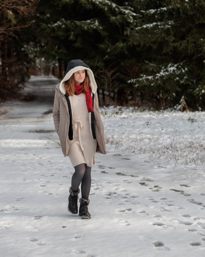 Der Winterwald wirkt oft fast monochrom – wie eine minimalistische Grafik. Ohne das ablenkende Grün des Sommers rückt deine Persönlichkeit, deine Geschichte und deine Weiblichkeit ganz automatisch in den Mittelpunkt. Es gibt kein visuelles Rauschen, nur dich und die Stille.